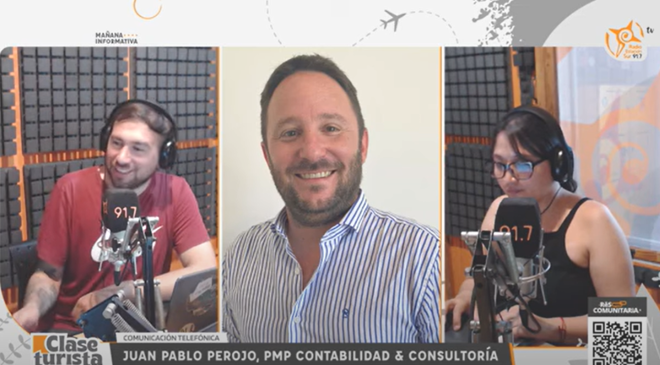 Lucas Villavicencio y Ailín Rocha entrevistaron a Juan Pablo Perojo, responsable de Contabilidad de Gestión y Estrategia Integral de PMP Contabilidad & Consultoría, en Clase Turista, programa emitido por Radio Estación Sur. Durante la charla, abordaron temas de actualidad económica y de interés fiscal.