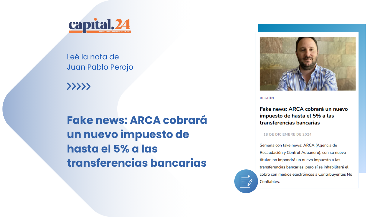 Juan Pablo Perojo, fue invitado por el Diario Capital 24 a escribir una columna sobre las novedades del mes relacionadas con la ARCA, para aportar la visión de PMP - Contabilidad & Consultoría en temas fiscales.