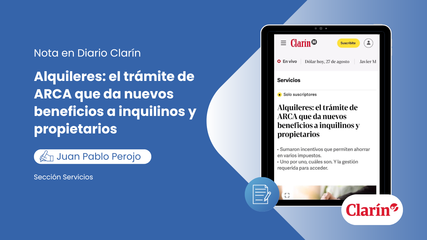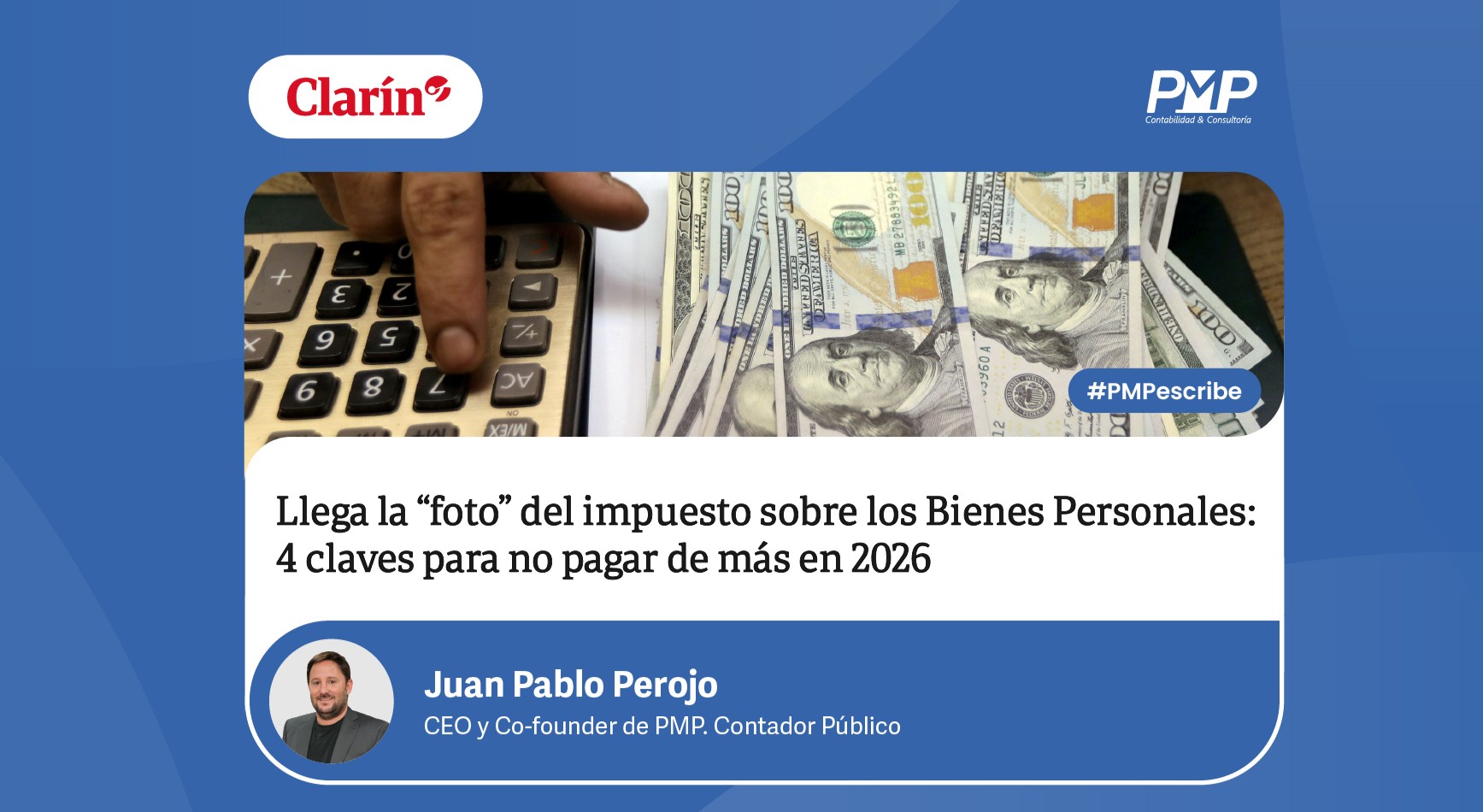 "Llega la 'foto' del impuesto sobre los Bienes Personales: 4 claves para no pagar de más en 2026" nuestro Co-founder y CEO, Juan Pablo Perojo, para la sección "Servicios" del Diario Clarín.